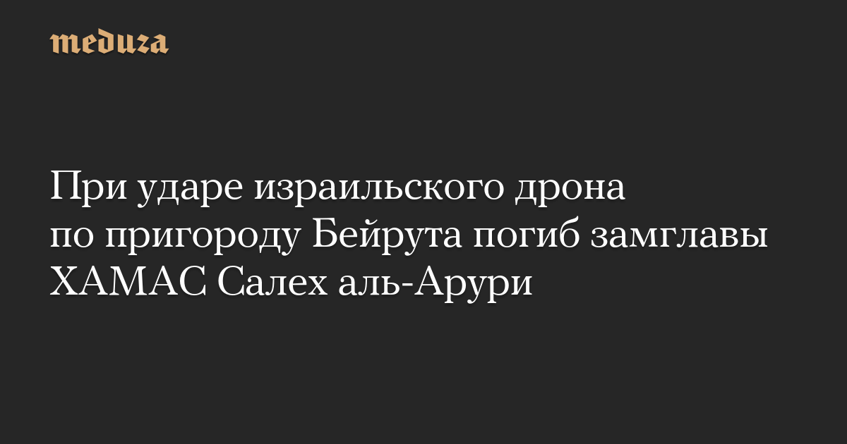 При ударе израильского дрона по пригороду Бейрута погиб замглавы ХАМАС Салех аль-Арури