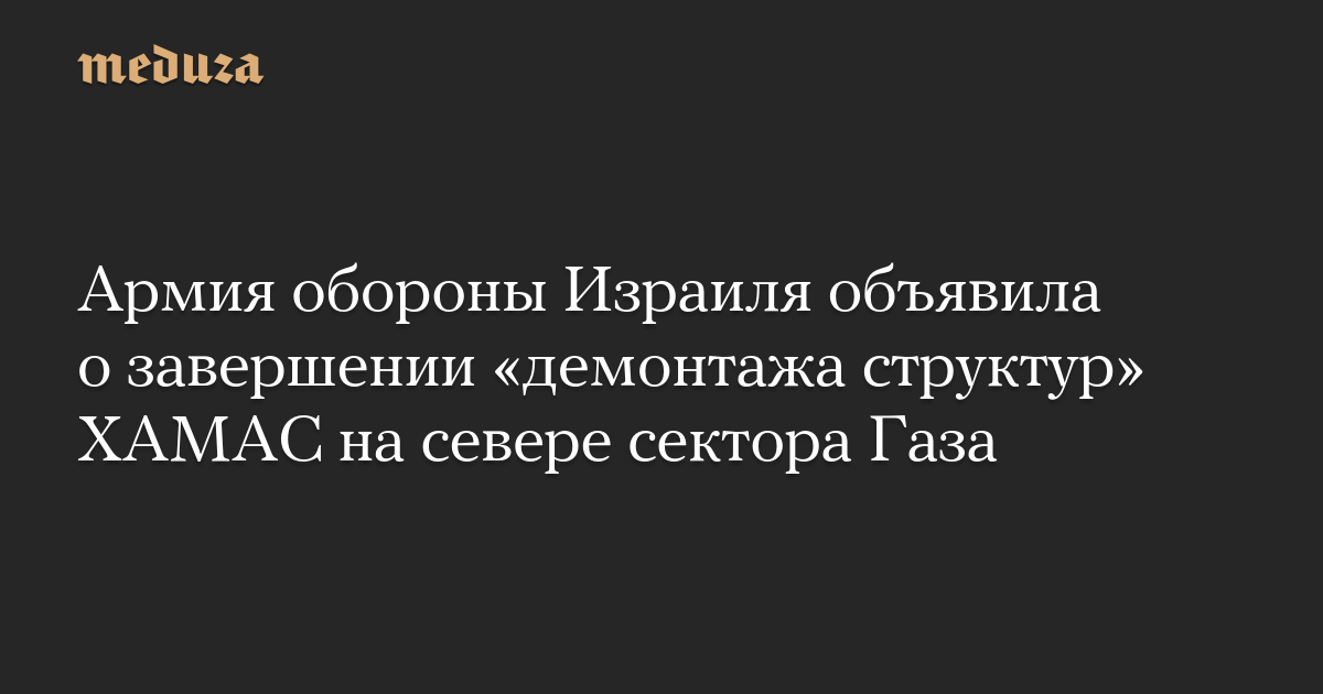Армия обороны Израиля объявила о завершении «демонтажа структур» ХАМАС на севере сектора Газа