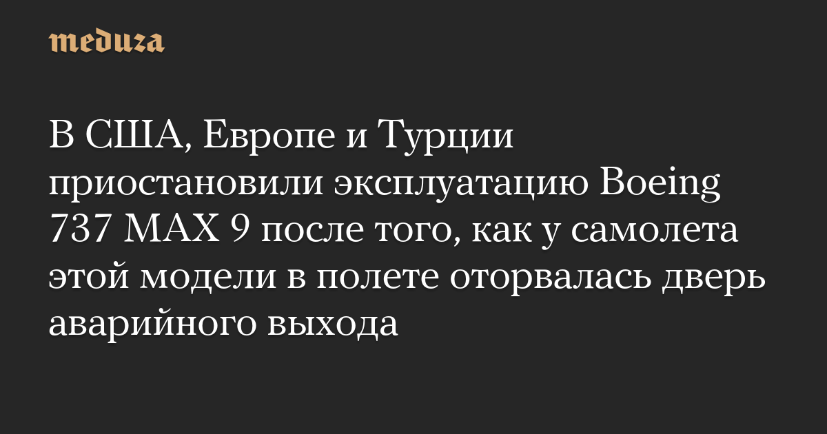В США, Европе и Турции приостановили эксплуатацию Boeing 737 MAX 9 после того, как у самолета этой модели в полете оторвалась дверь аварийного выхода
