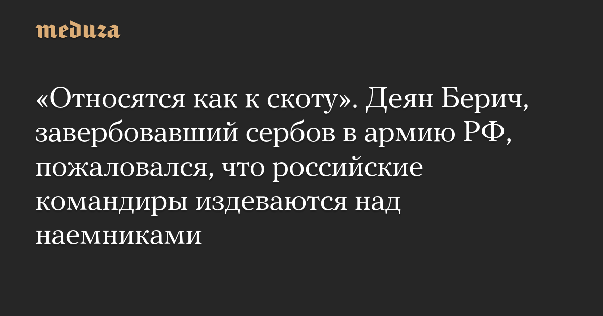 «Относятся как к скоту». Деян Берич, завербовавший сербов в армию РФ, пожаловался, что российские командиры издеваются над наемниками