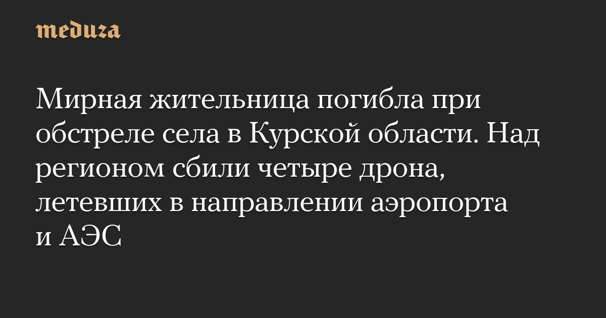 Мирная жительница погибла при обстреле села в Курской области. Над регионом сбили четыре дрона, летевших в направлении аэропорта и АЭС