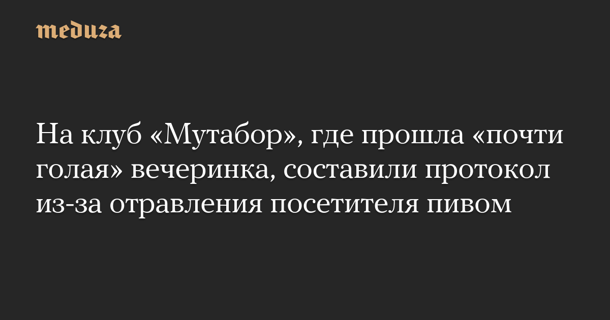 На клуб «Мутабор», где прошла «почти голая» вечеринка, составили протокол из-за отравления посетителя пивом