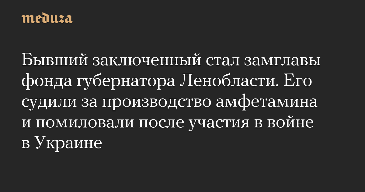 Бывший заключенный стал замглавы фонда губернатора Ленобласти. Его судили за производство амфетамина и помиловали после участия в войне в Украине