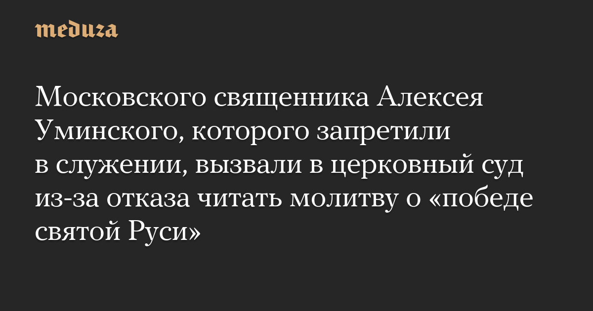 Московского священника Алексея Уминского, которого запретили в служении, вызвали в церковный суд из-за отказа читать молитву о «победе святой Руси»