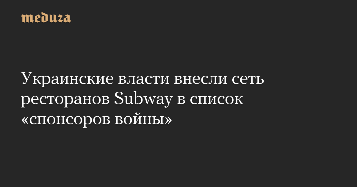 Украинские власти внесли сеть ресторанов Subway в список «спонсоров войны»