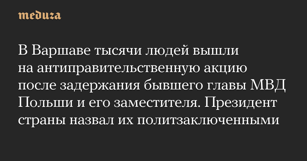 В Варшаве тысячи людей вышли на антиправительственную акцию после задержания бывшего главы МВД Польши и его заместителя. Президент страны назвал их политзаключенными