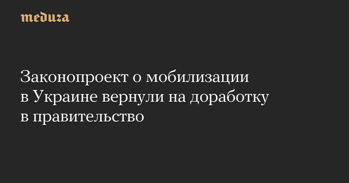 Законопроект об изменении правил мобилизации в Украине, внесенный правительством страны в Верховную раду, возвращен на доработку в кабинет министров. Об этом объявил лидер фракции «Слуга народа» в Верховной раде Давид Арахамия.