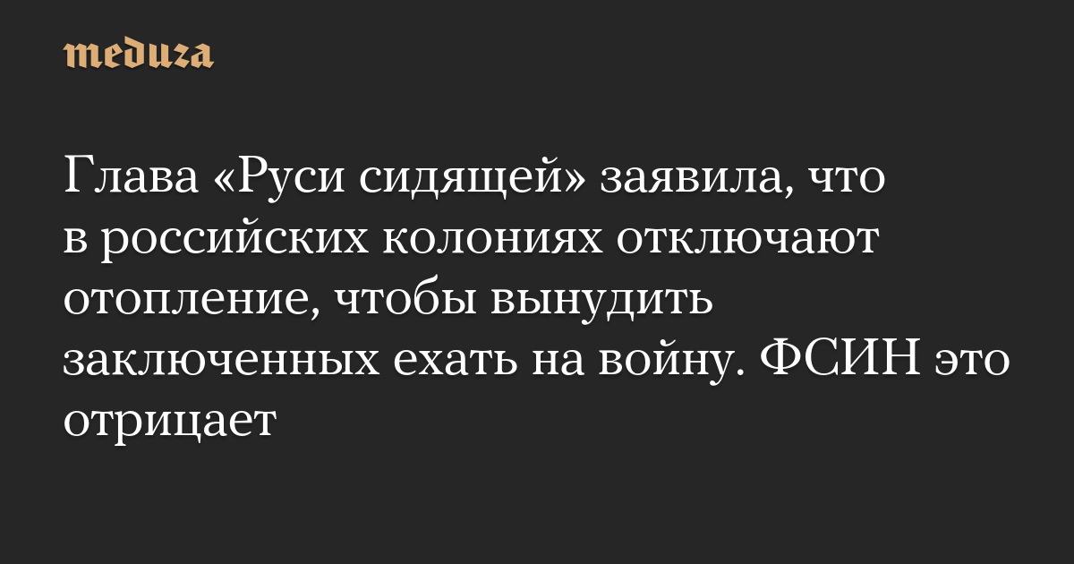 Глава «Руси сидящей» заявила, что в российских колониях отключают отопление, чтобы вынудить заключенных ехать на войну. ФСИН это отрицает