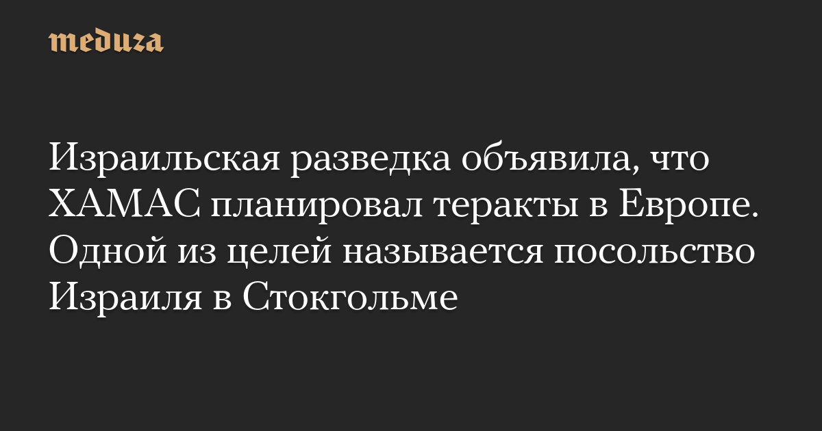 Израильская разведка объявила, что ХАМАС планировал теракты в Европе. Одной из целей называется посольство Израиля в Стокгольме