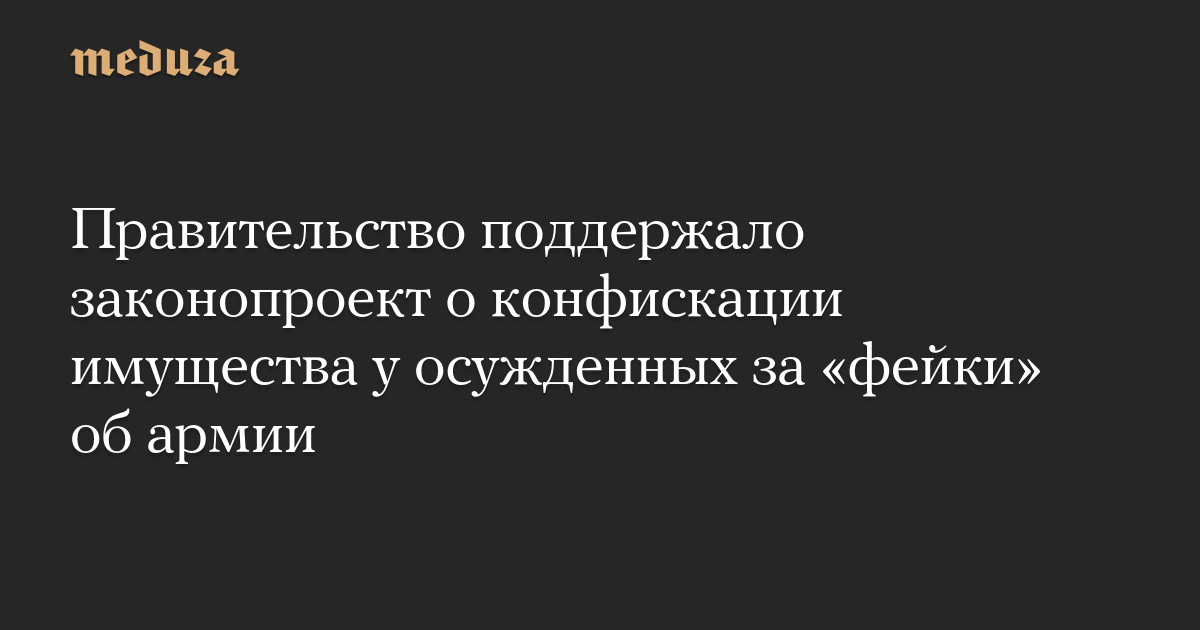 Правительство поддержало законопроект о конфискации имущества у осужденных за «фейки» об армии