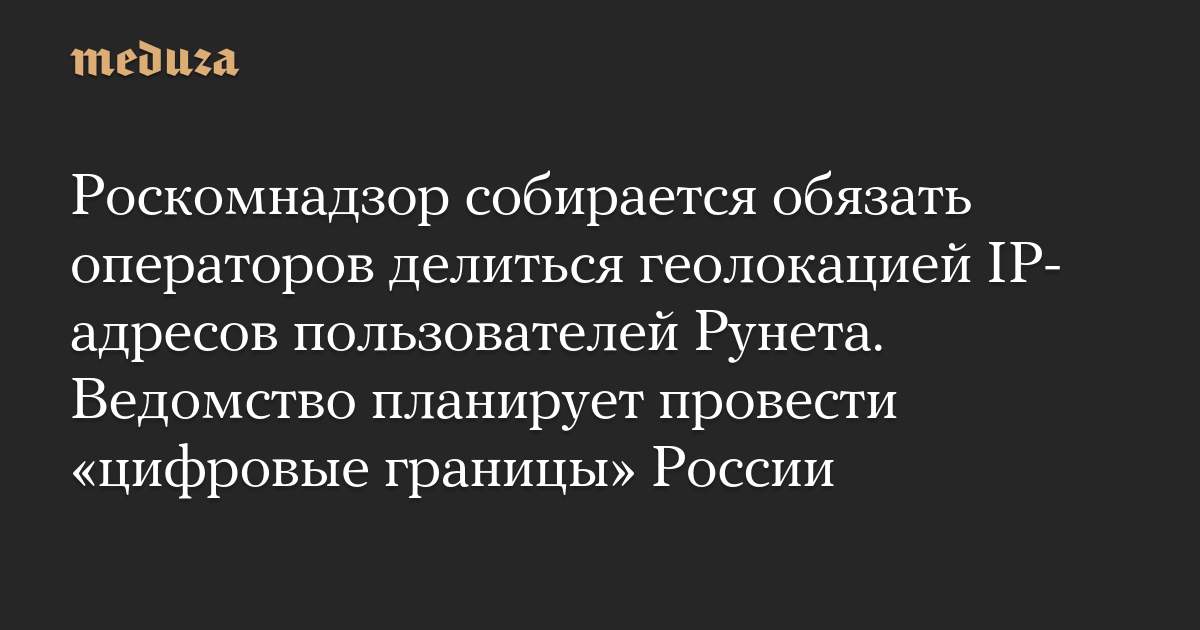 Роскомнадзор собирается обязать операторов делиться геолокацией IP-адресов пользователей Рунета. Ведомство планирует провести «цифровые границы» России
