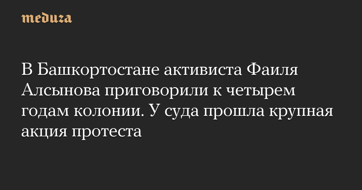 Правка. Первоначально в новости со ссылкой на телеграм-канал «Осторожно, новости» сообщалось, что Фаиля Алсынова приговорили к четырем годам в колонии-поселении. Это не так. Редакция «Медузы» приносит извинения.