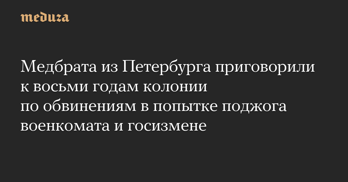 Медбрата из Петербурга приговорили к восьми годам колонии по обвинениям в попытке поджога военкомата и госизмене