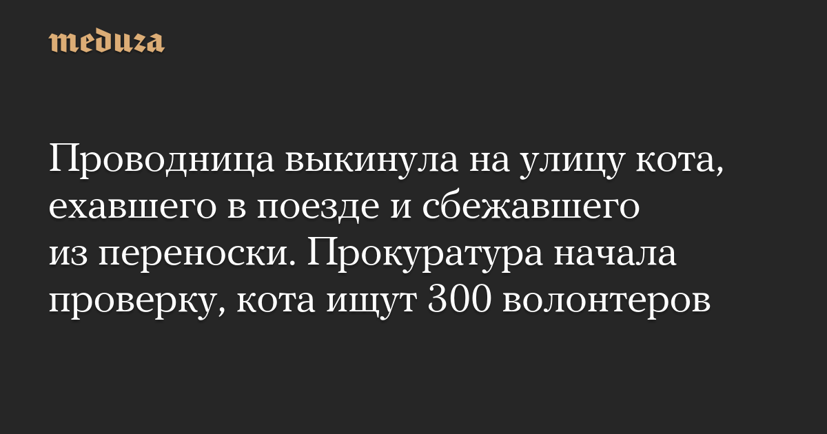 Проводница выкинула на улицу кота, ехавшего в поезде и сбежавшего из переноски. Прокуратура начала проверку, кота ищут 300 волонтеров