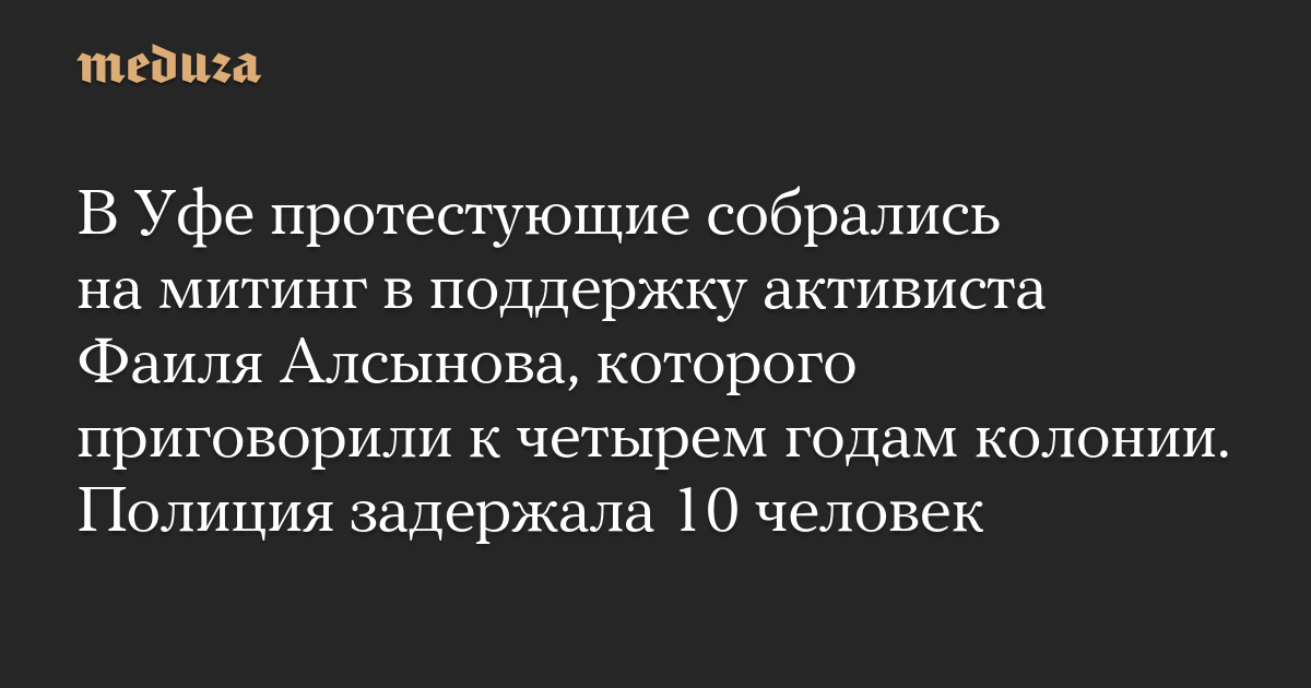В Уфе протестующие собрались на митинг в поддержку активиста Фаиля Алсынова, которого приговорили к четырем годам колонии. Полиция задержала 10 человек