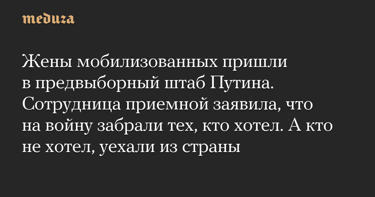 Жены мобилизованных пришли в предвыборный штаб Путина. Сотрудница приемной заявила, что на войну забрали тех, кто хотел. А кто не хотел, уехали из страны