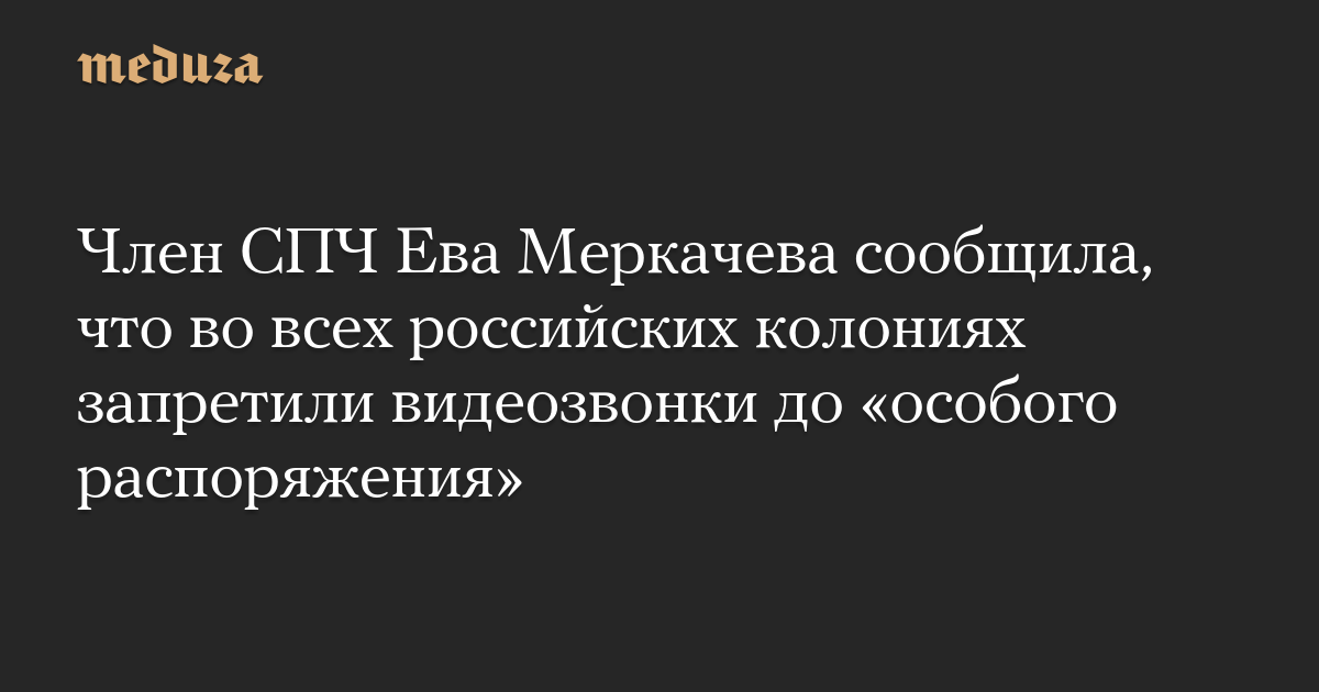 Член СПЧ Ева Меркачева сообщила, что во всех российских колониях запретили видеозвонки до «особого распоряжения»