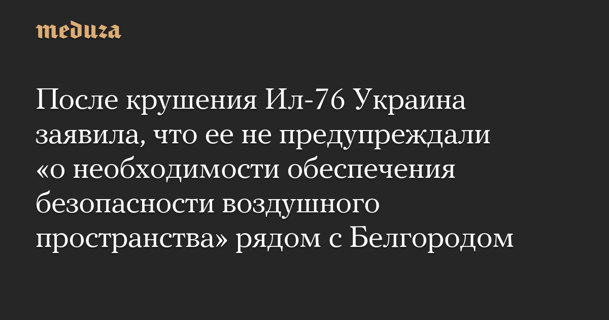 После крушения Ил-76 Украина заявила, что ее не предупреждали «о необходимости обеспечения безопасности воздушного пространства» рядом с Белгородом