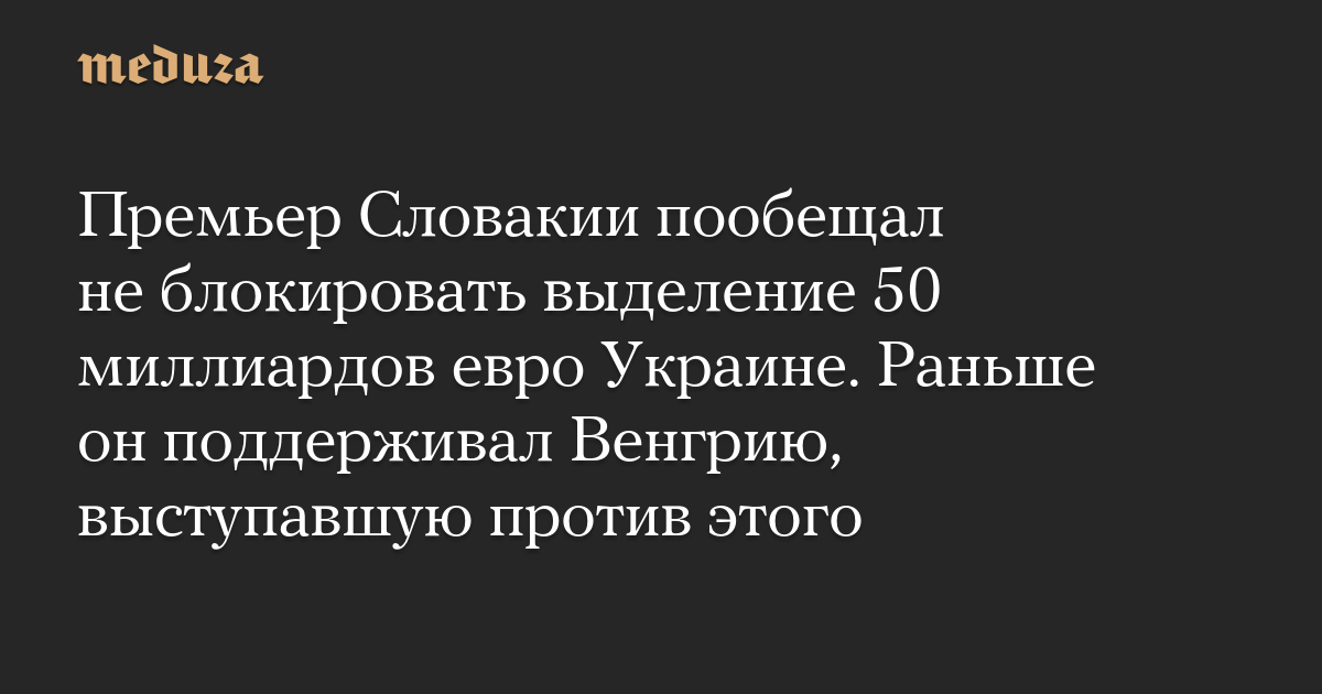 Премьер Словакии пообещал не блокировать выделение 50 миллиардов евро Украине. Раньше он поддерживал Венгрию, выступавшую против этого