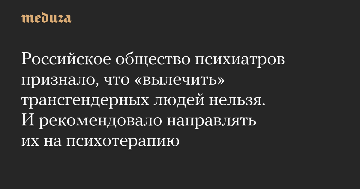 Российское общество психиатров признало, что «вылечить» трансгендерных людей нельзя. И рекомендовало направлять их на психотерапию