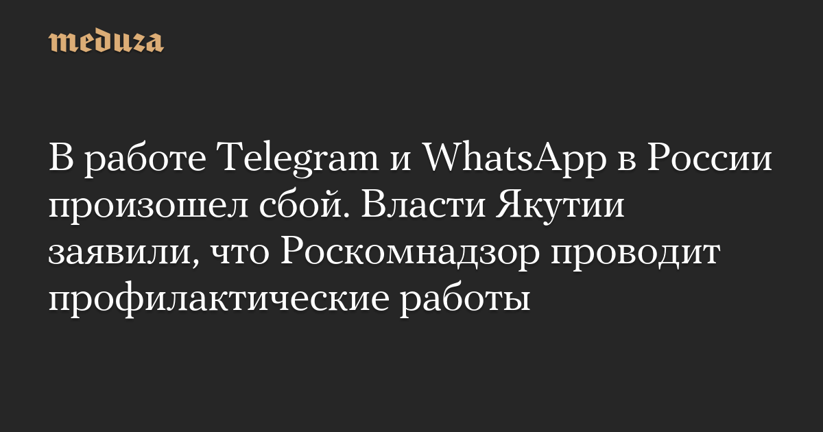 В работе Telegram и WhatsApp в России произошел сбой. Власти Якутии заявили, что Роскомнадзор проводит профилактические работы