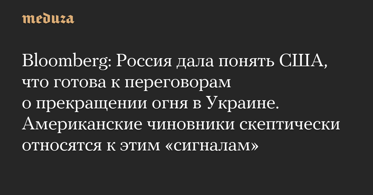 Bloomberg: Россия дала понять США, что готова к переговорам о прекращении огня в Украине. Американские чиновники скептически относятся к этим «сигналам»