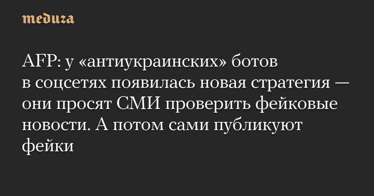 AFP: у «антиукраинских» ботов в соцсетях появилась новая стратегия — они просят СМИ проверить фейковые новости. А потом сами публикуют фейки