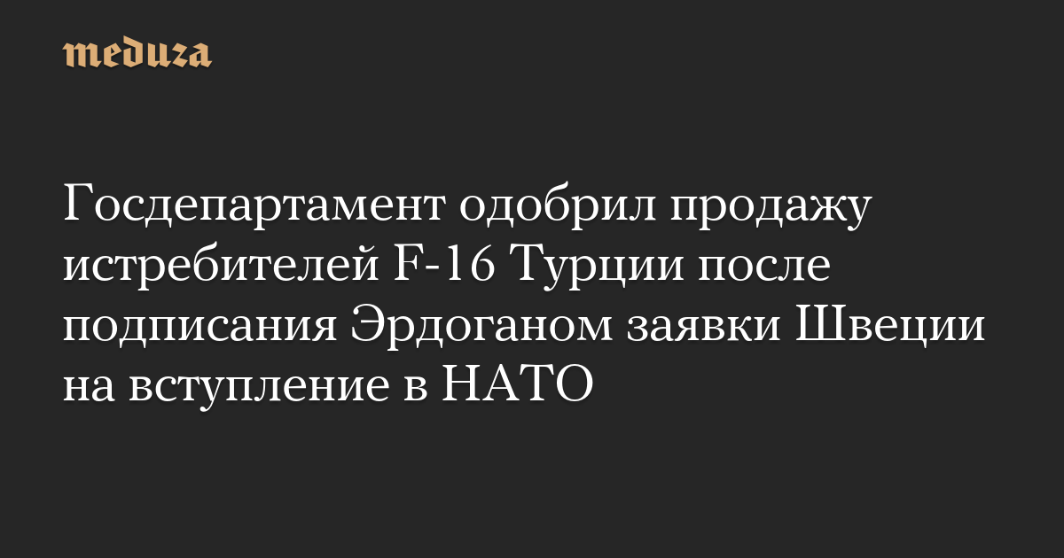 Администрация президента США Джо Байдена одобрила продажу истребителей F-16 Турции после того, как президент страны Реджеп Тайип Эрдоган подписал соглашение о вступлении Швеции в НАТО, сообщает CNN.