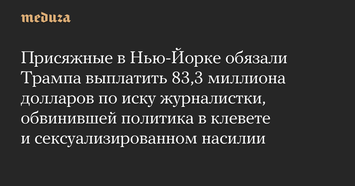 Присяжные в Нью-Йорке обязали Трампа выплатить 83,3 миллиона долларов по иску журналистки, обвинившей политика в клевете и сексуализированном насилии
