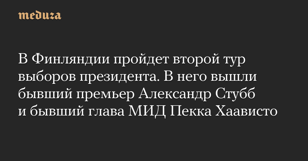 Во второй тур выборов президента Финляндии вышли бывший премьер-министр страны Александр Стубб и бывший глава МИД Пекка Хаависто, сообщает русская служба Yle.