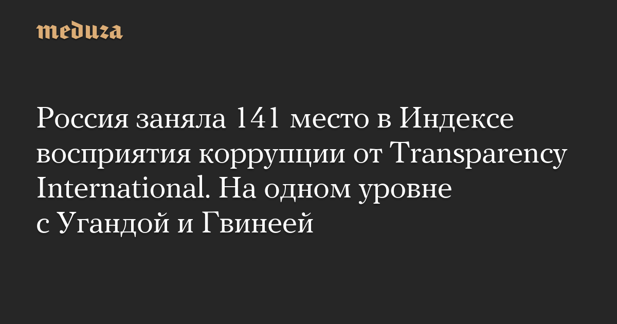 Россия заняла 141 место в Индексе восприятия коррупции от Transparency International. На одном уровне с Угандой и Гвинеей