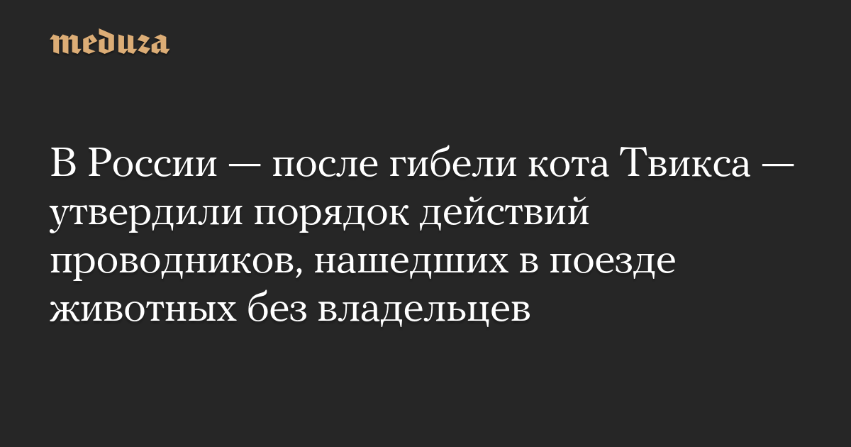 В России — после гибели кота Твикса — утвердили порядок действий проводников, нашедших в поезде животных без владельцев