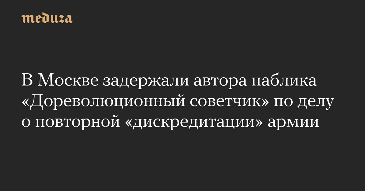 В Москве задержали автора паблика «Дореволюционный советчик» по делу о повторной «дискредитации» армии