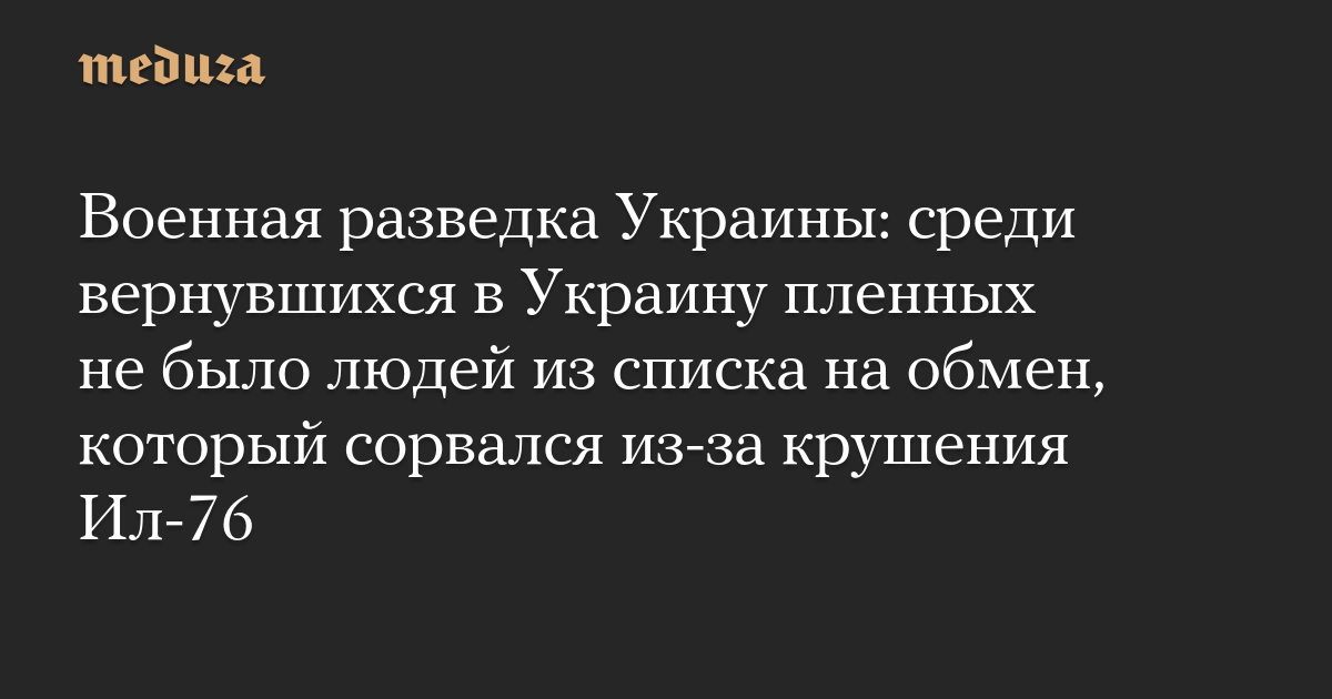 Военная разведка Украины: среди вернувшихся в Украину пленных не было людей из списка на обмен, который сорвался из-за крушения Ил-76