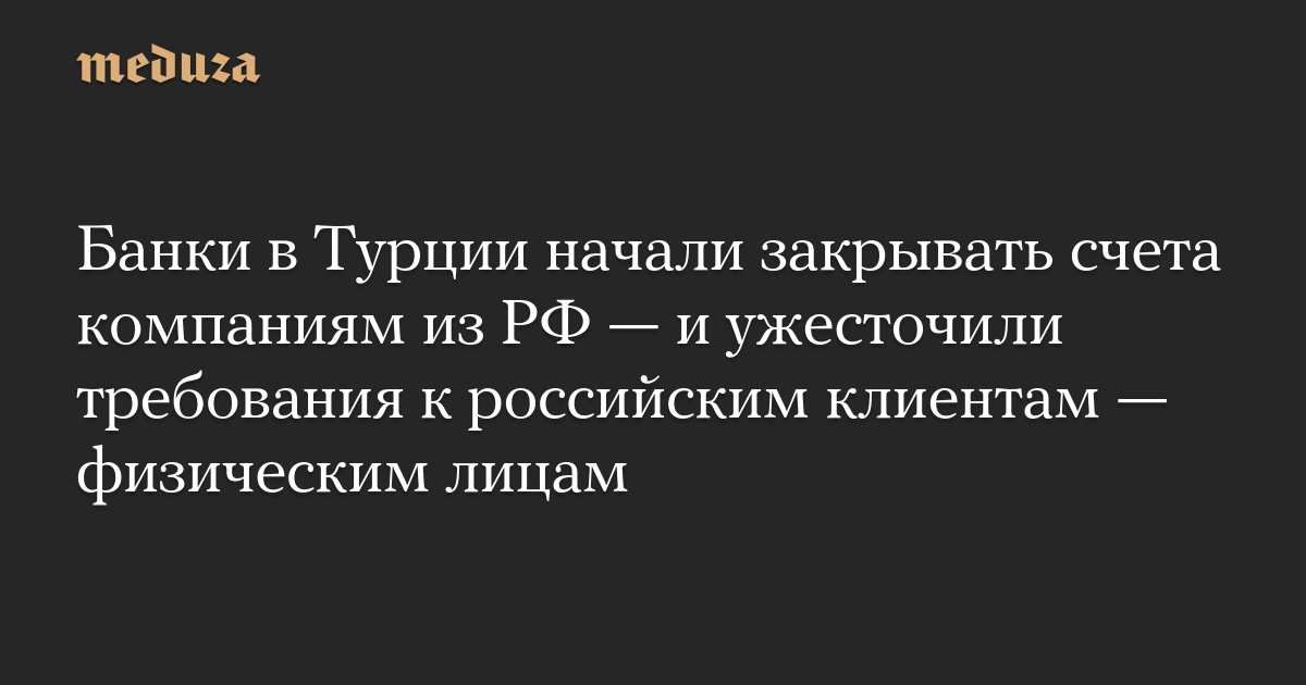 Банки в Турции начали закрывать счета компаниям из РФ — и ужесточили требования к российским клиентам — физическим лицам