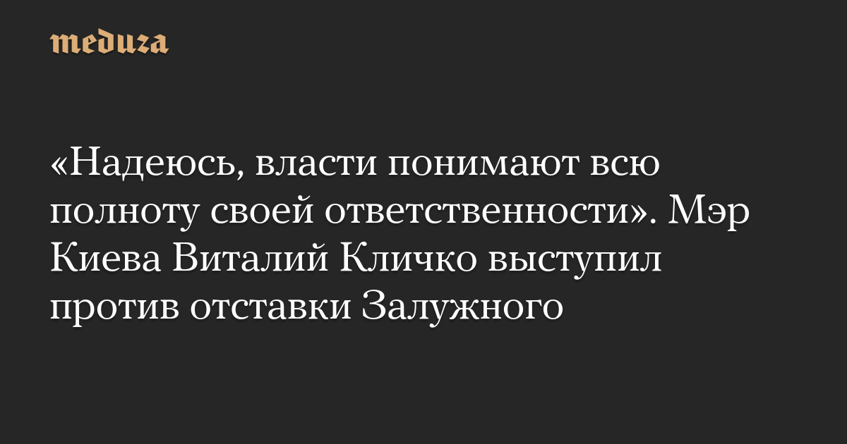 «Надеюсь, власти понимают всю полноту своей ответственности». Мэр Киева Виталий Кличко выступил против отставки Залужного