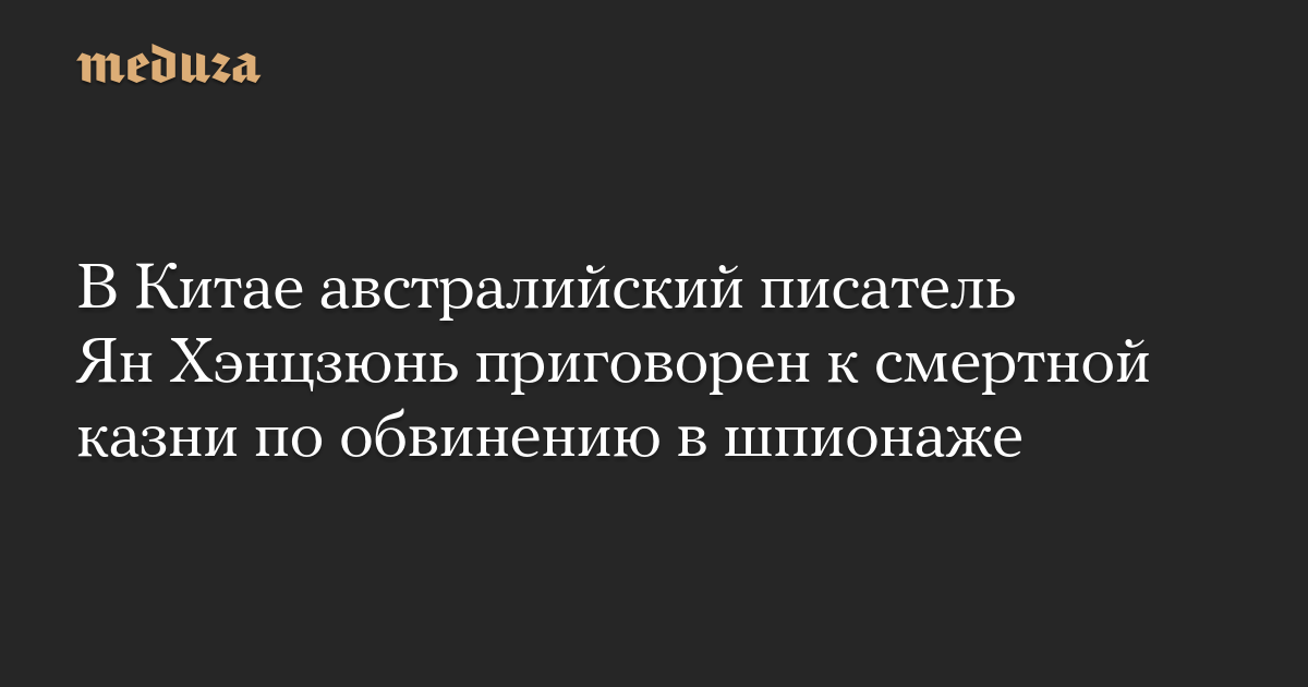 Суд в Пекине приговорил австралийского писателя Ян Хэнцзюня, обвиняемого в шпионаже, к смертной казни с отсрочкой исполнения приговора, сообщает австралийский телеканал SBS со ссылкой на главу МИД Австралии Пенни Вонг.