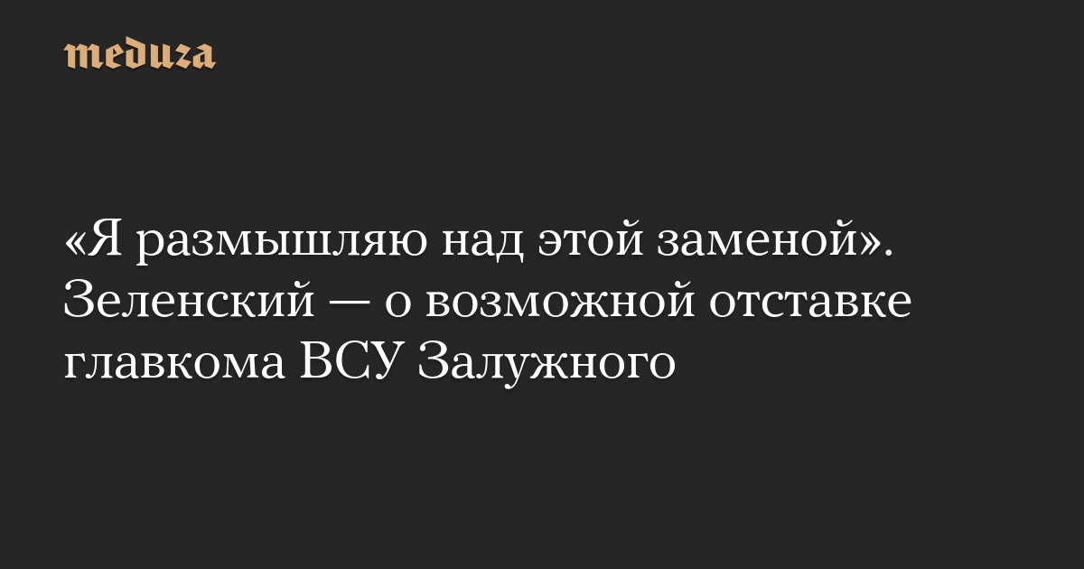 «Когда мы говорим об этом, я имею в виду замену целого ряда руководящих лиц государства, не только в отдельном секторе, таком как военный. Я размышляю над этой заменой (Залужного), но нельзя сказать, что мы заменили одного человека», — отметил Зеленский.