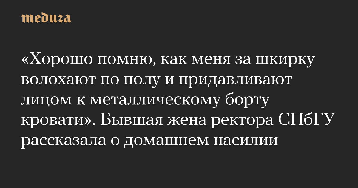 «Хорошо помню, как меня за шкирку волохают по полу и придавливают лицом к металлическому борту кровати». Бывшая жена ректора СПбГУ рассказала о домашнем насилии