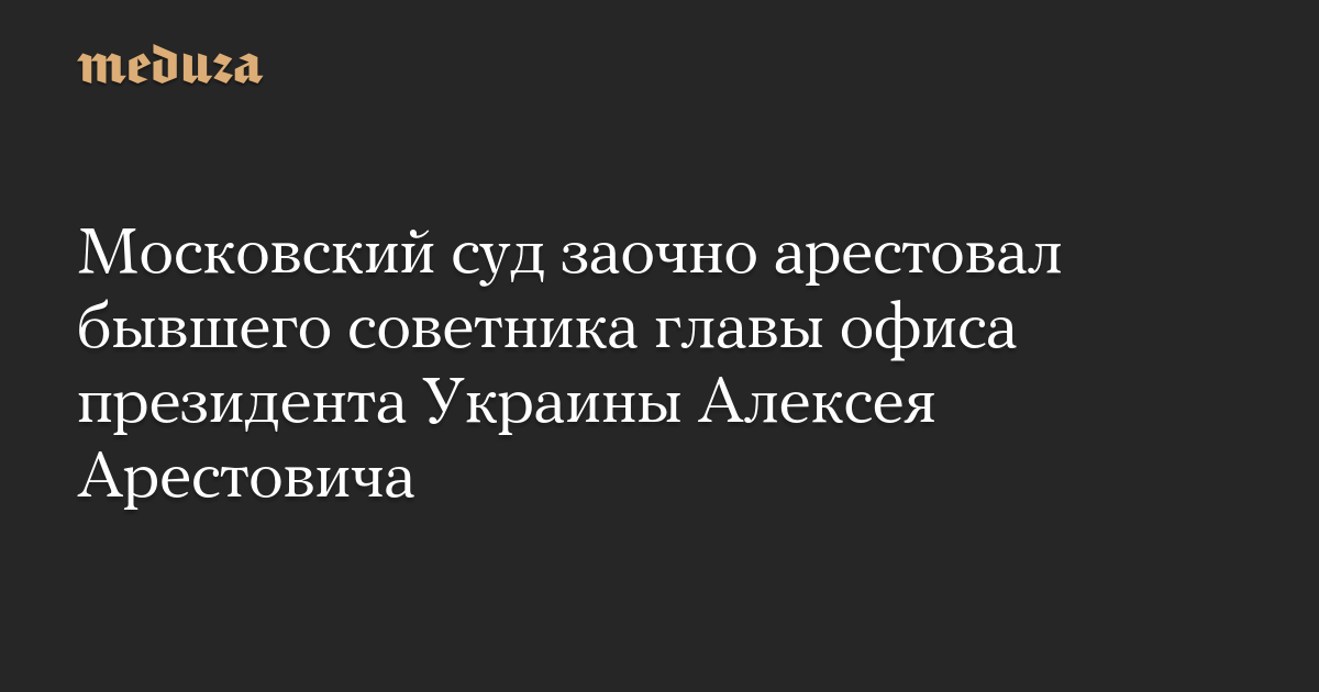 Басманный суд Москвы заочно арестовал на два месяца бывшего советника главы офиса президента Украины Алексея Арестовича.