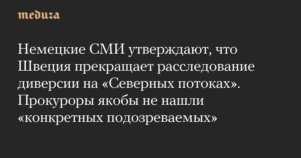 Немецкие СМИ утверждают, что Швеция прекращает расследование диверсии на «Северных потоках». Прокуроры якобы не нашли «конкретных подозреваемых»