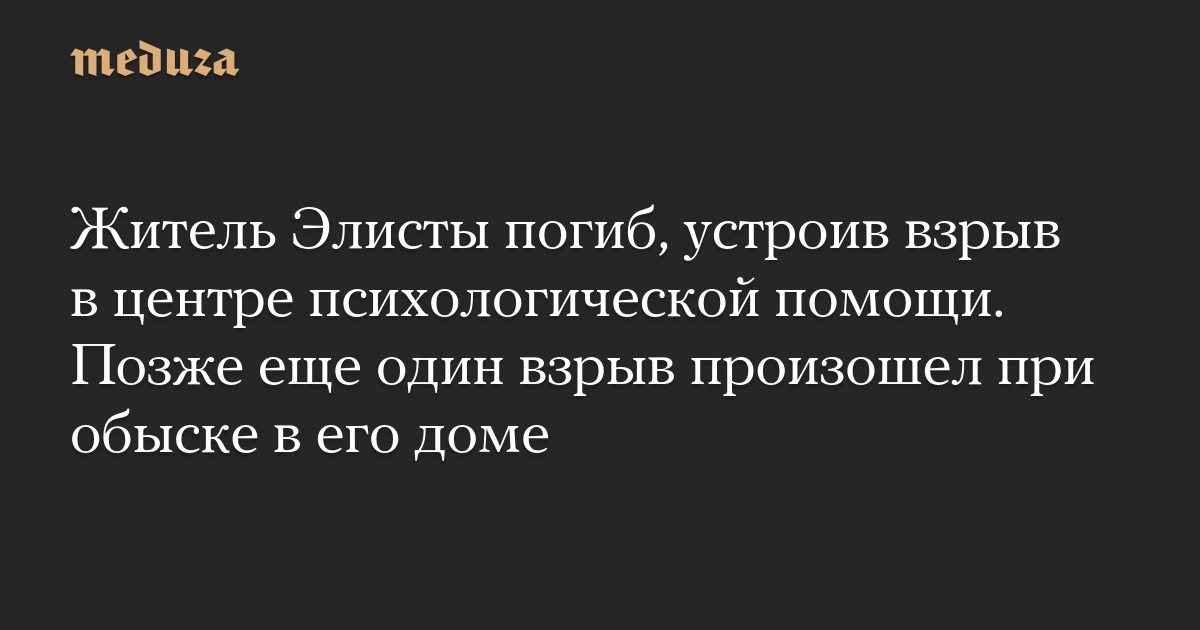 Shot пишет, что взрыв устроил посетитель центра после конфликта с сотрудниками. Он погиб на месте. Ранения, по данным телеграм-канала, получили учредитель центра «Альтернатива», главный внештатный педагог-психолог в сфере образования министерства науки Калмыкии Намджил Яманова и ее муж Герман.