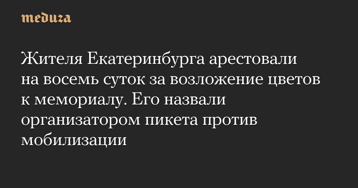 Жителя Екатеринбурга арестовали на восемь суток за возложение цветов к мемориалу. Его назвали организатором пикета против мобилизации