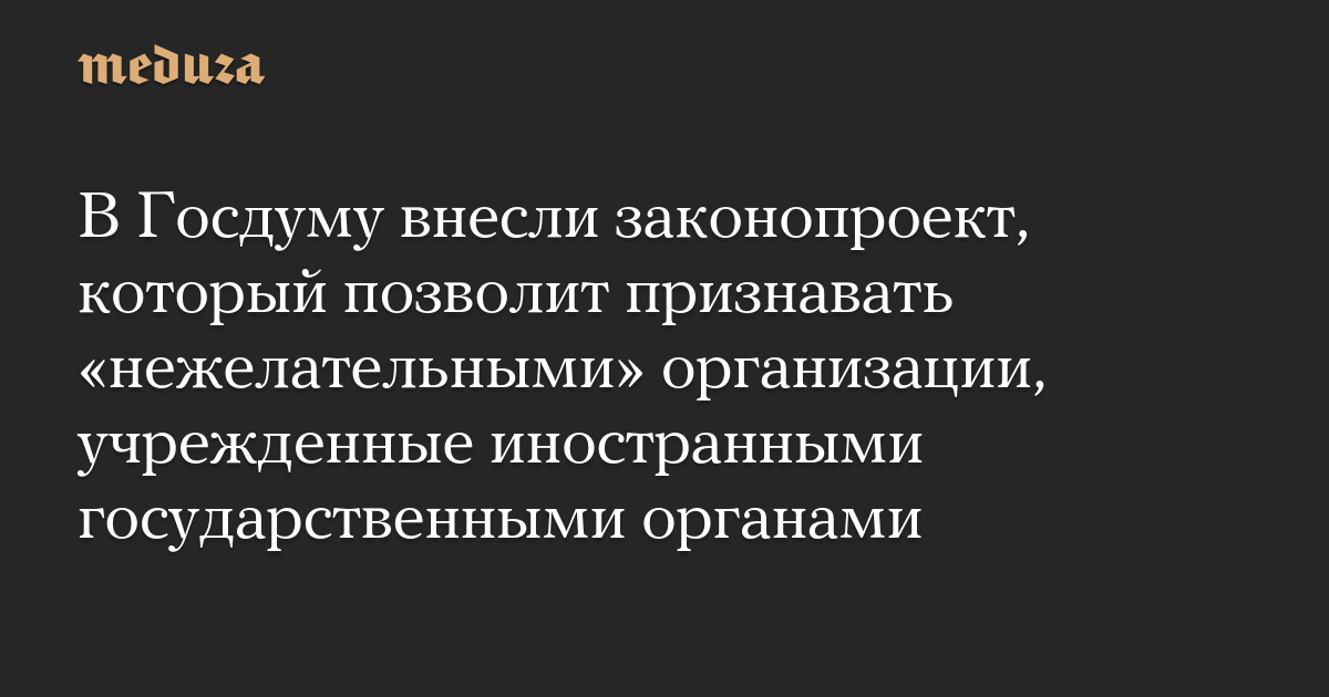 В Госдуму внесли законопроект, который позволит признавать «нежелательными» организации, учрежденные иностранными государственными органами