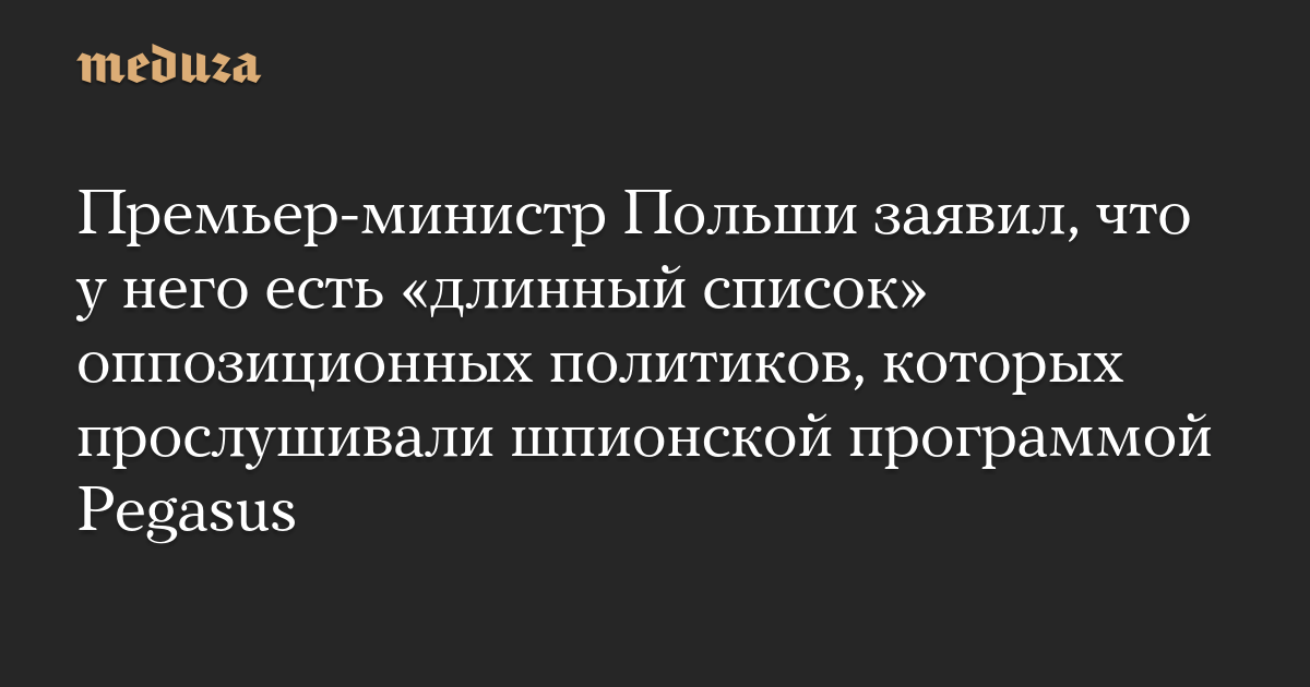 Премьер-министр Польши заявил, что у него есть «длинный список» оппозиционных политиков, которых прослушивали шпионской программой Pegasus