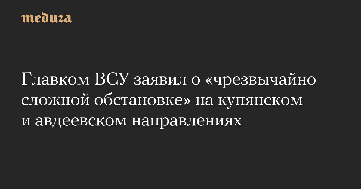 Главком ВСУ заявил о «чрезвычайно сложной обстановке» на купянском и авдеевском направлениях