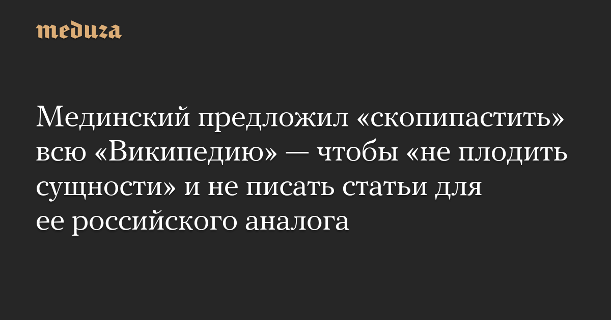 Мединский предложил «скопипастить» всю «Википедию» — чтобы «не плодить сущности» и не писать статьи для ее российского аналога