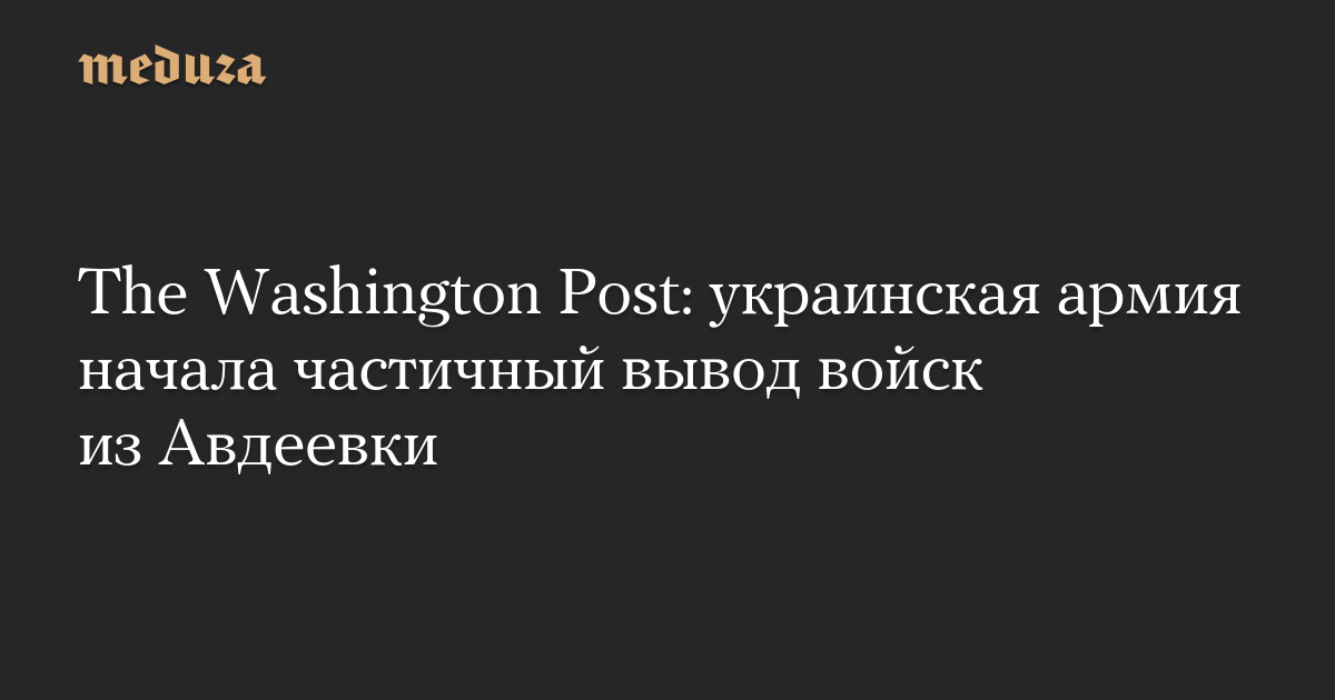 The Washington Post: украинская армия начала частичный вывод войск из Авдеевки