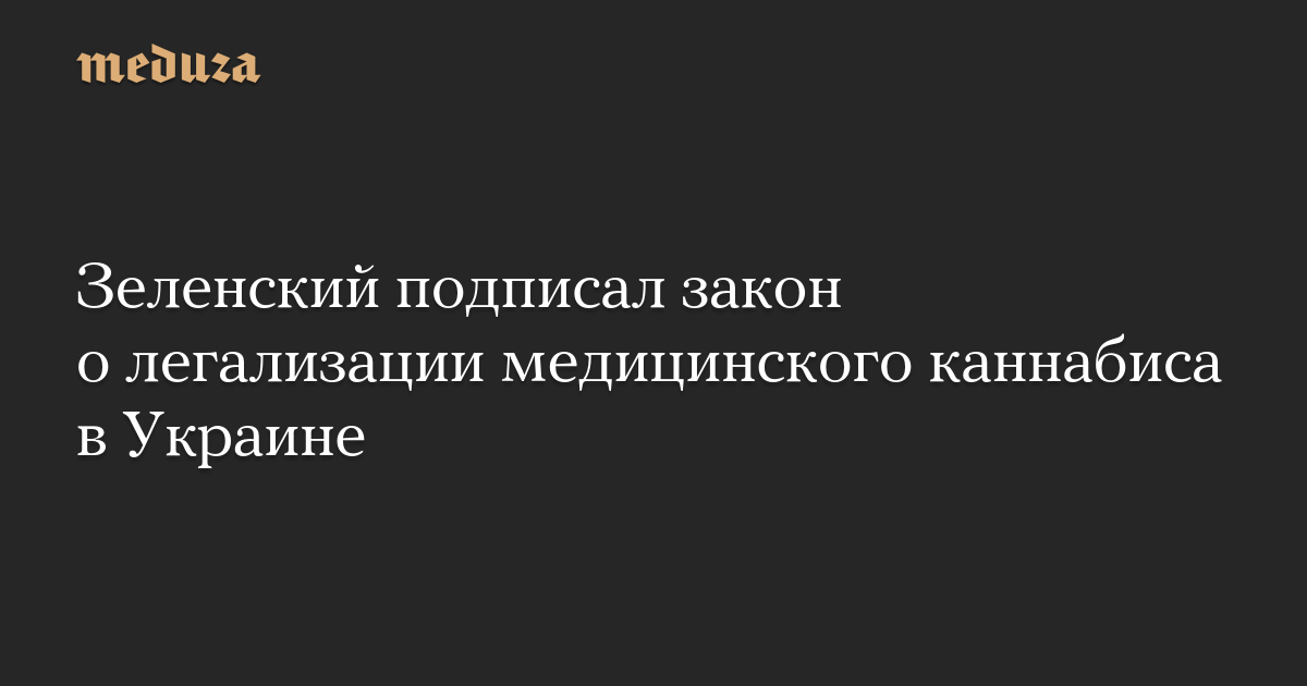 Президент Украины Владимир Зеленский подписал закон о легализации каннабиса в медицинских целях. Это следует из сообщения газеты Верховной Рады «Голос Украины», опубликовавшей 15 февраля текст закона (.pdf). В карточке закона на сайте украинского парламента сказано, что Зеленский вернул в Раду документ со своей подписью 13 февраля.