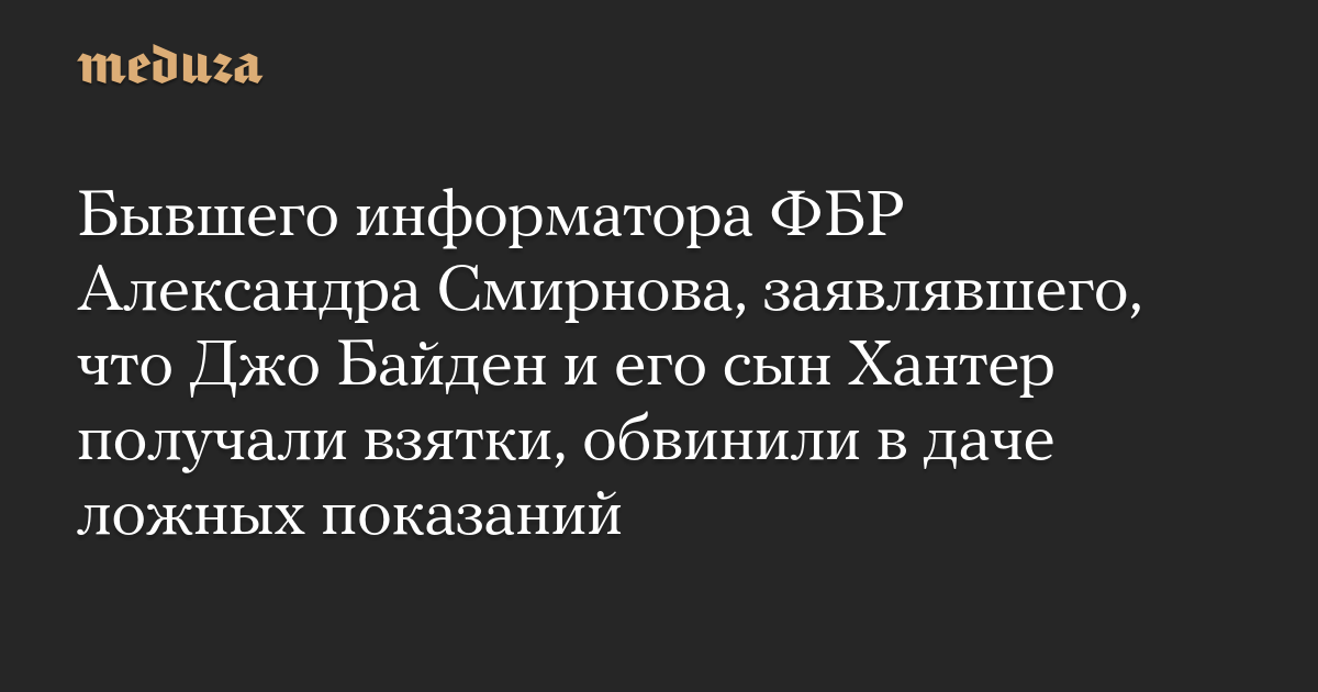 Бывшего информатора ФБР Александра Смирнова, заявлявшего, что Джо Байден и его сын Хантер получали взятки, обвинили в даче ложных показаний